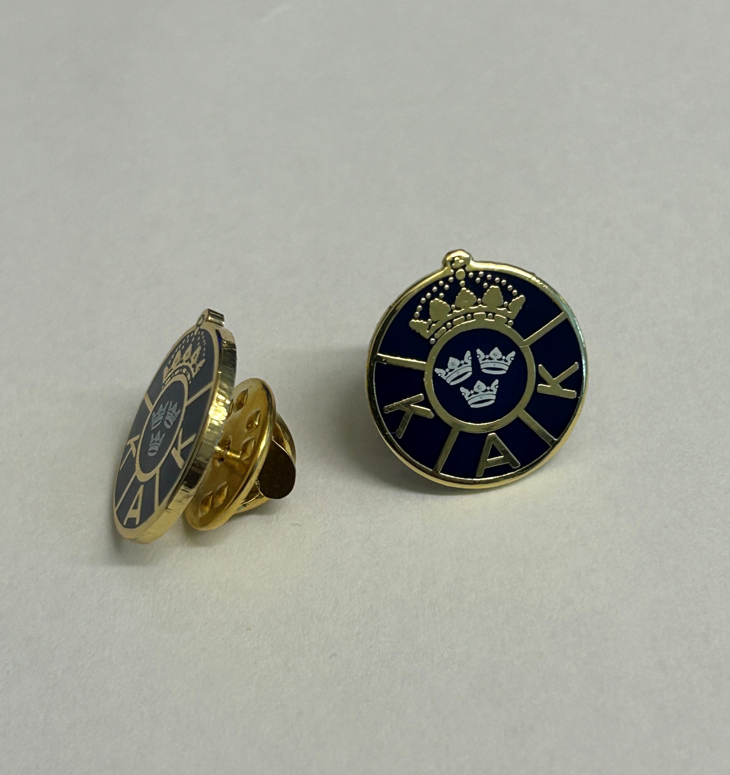 Guldpin med clutch med KAK:s mörkblå logga
